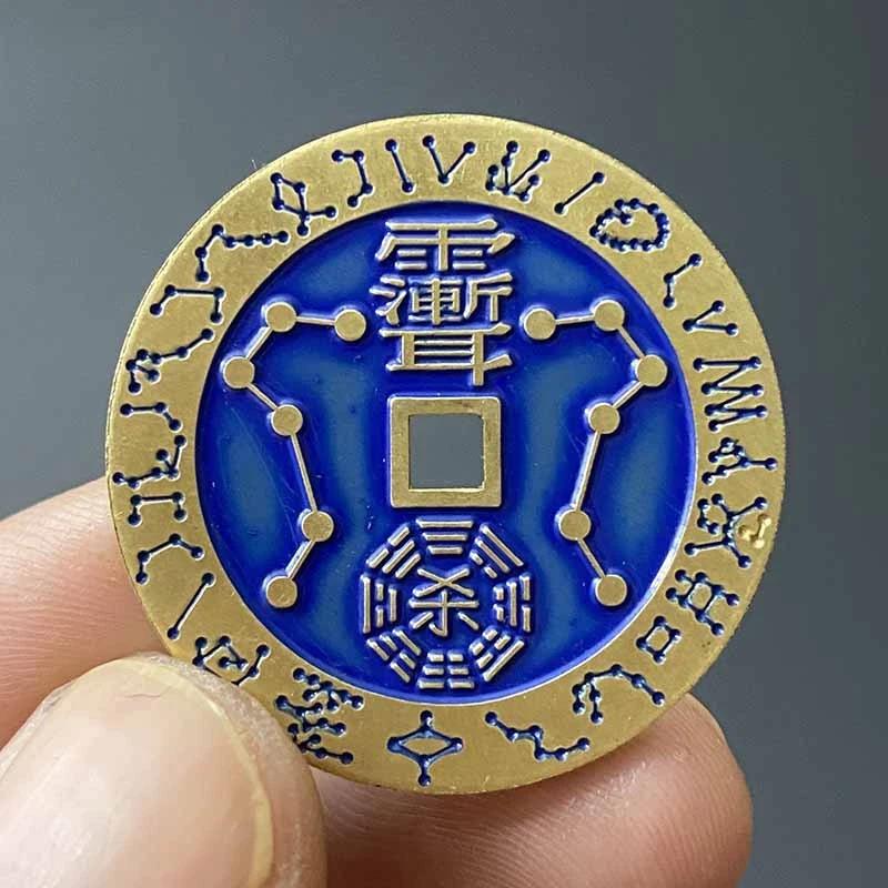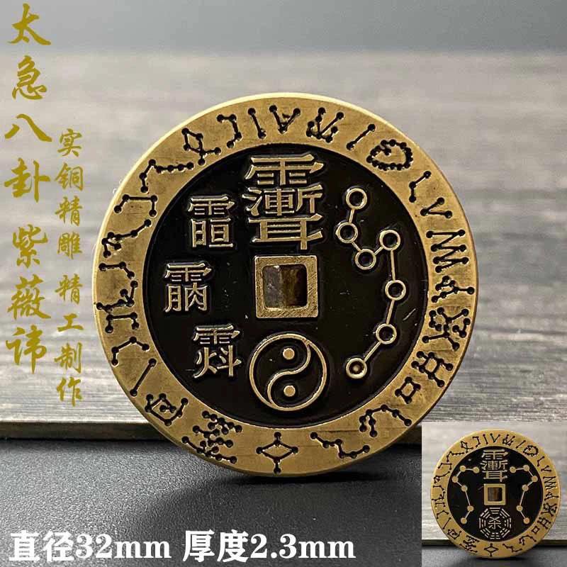 Daoist Purple Star Auspicious Coin with Big Dipper Seven Stars Display Peace and Good Fortune Rain-Repelling Pure Copper Men’s Portable Coin Pendant
