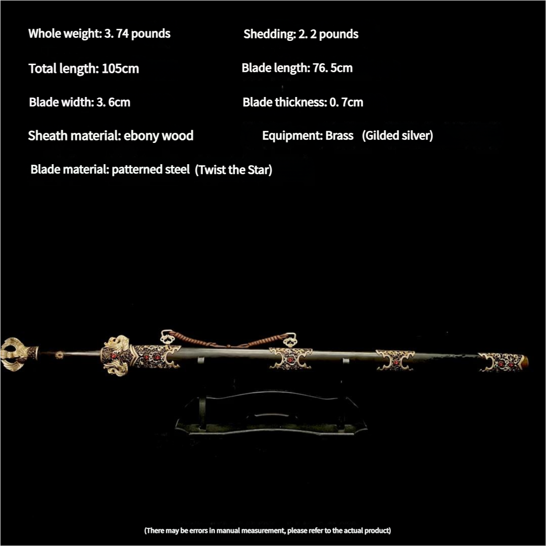 Longquan City Sword Patterned Steel Blade Hand-Forged Cold Weapon Unsharpened
