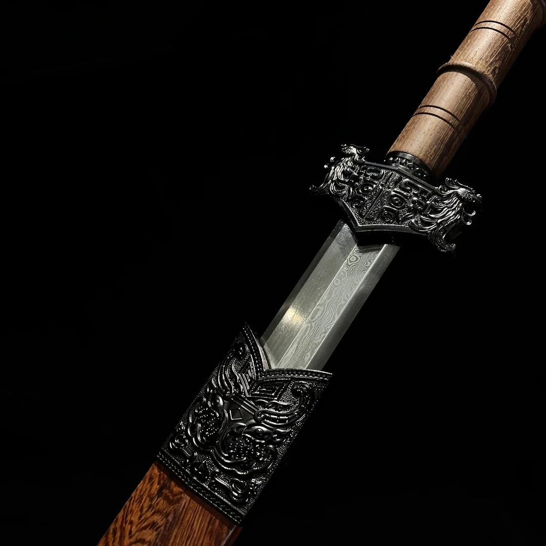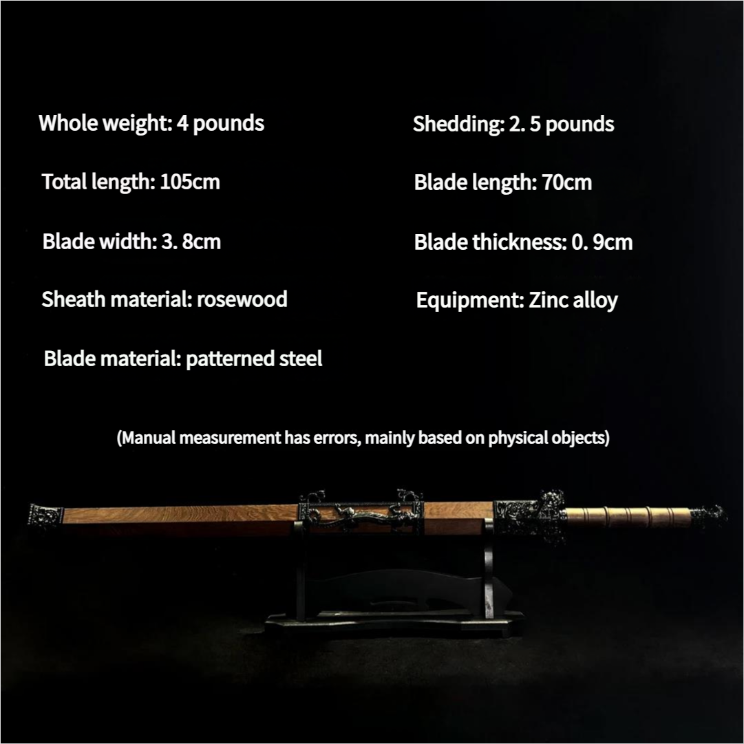Longquan City Rosewood Patterned Steel Sword Hand-Forged Unsharpened Cold Weapon