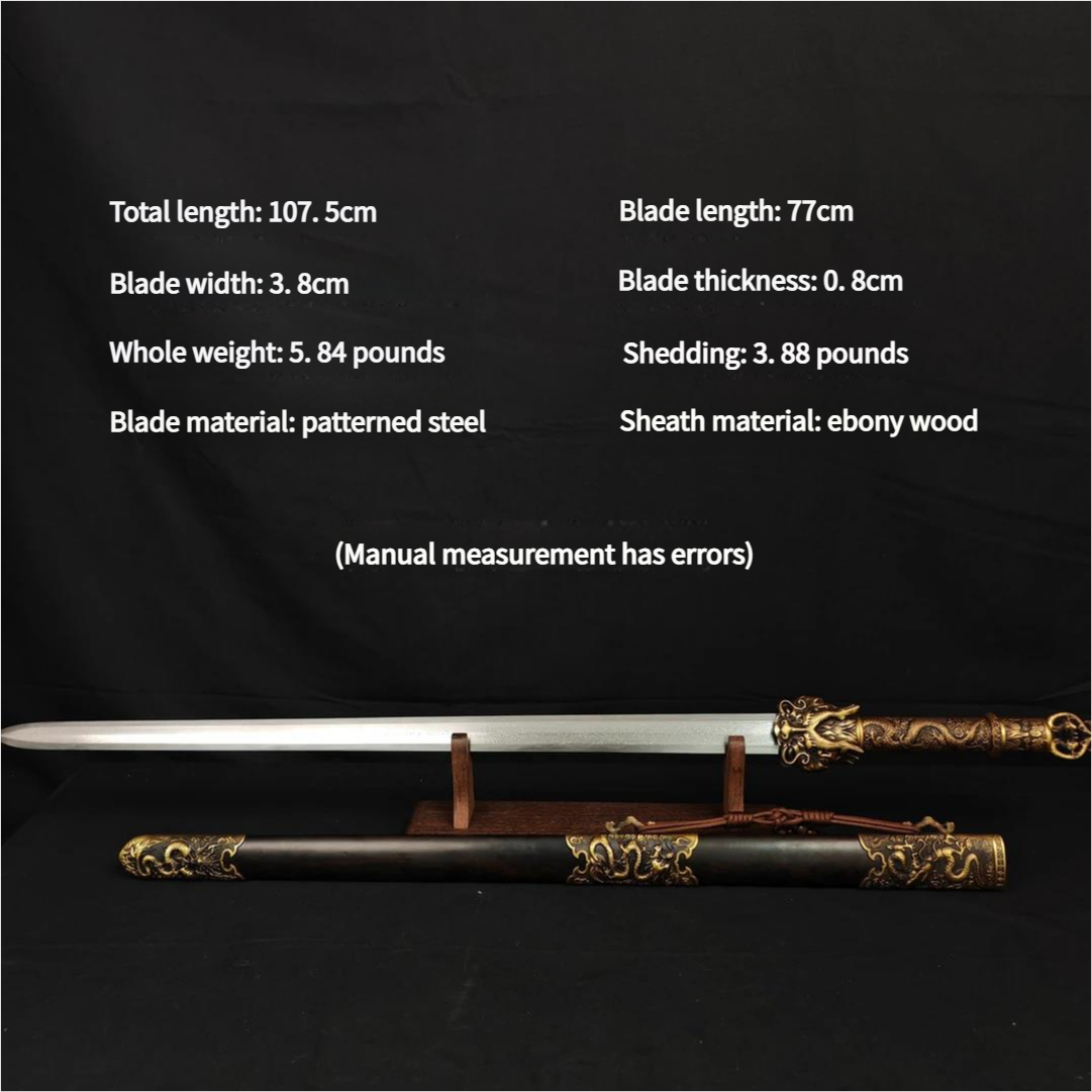 Longquan Sword Patterned steel blade Ebony scabbard Hand-forged Cold weapon Unsharpened