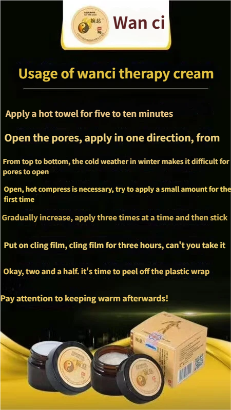 Wan Ci Ointment is for external use only. Strictly follow the instructions and avoid contact with wounds, mucous membranes, or other sensitive areas.