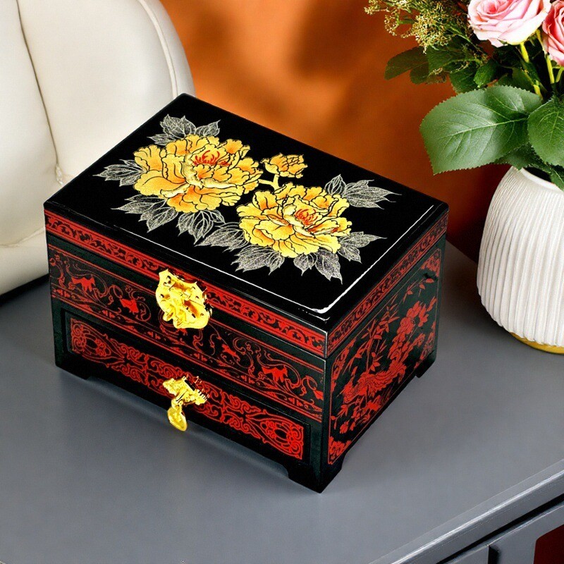 Jewelry Box Set Vintage Jewelry Storage Box Pingyao Lacquerware Box Ancient-Style Trousseau Wedding Dowry Gift Jewelry Box