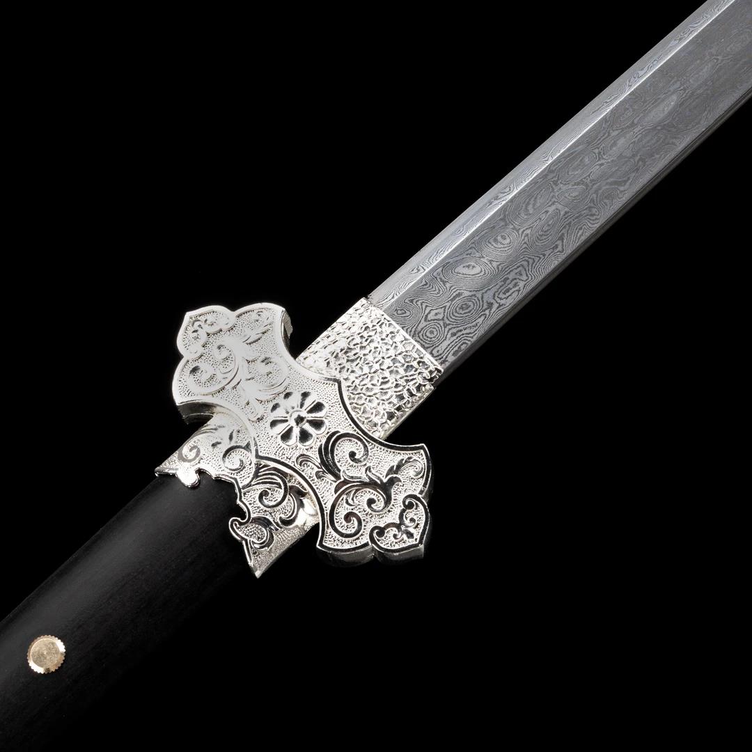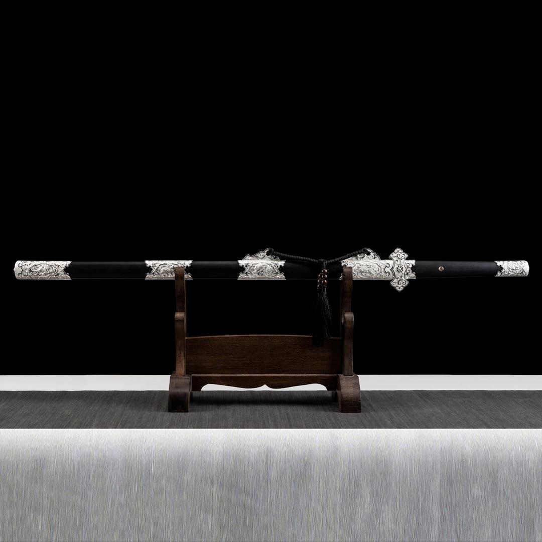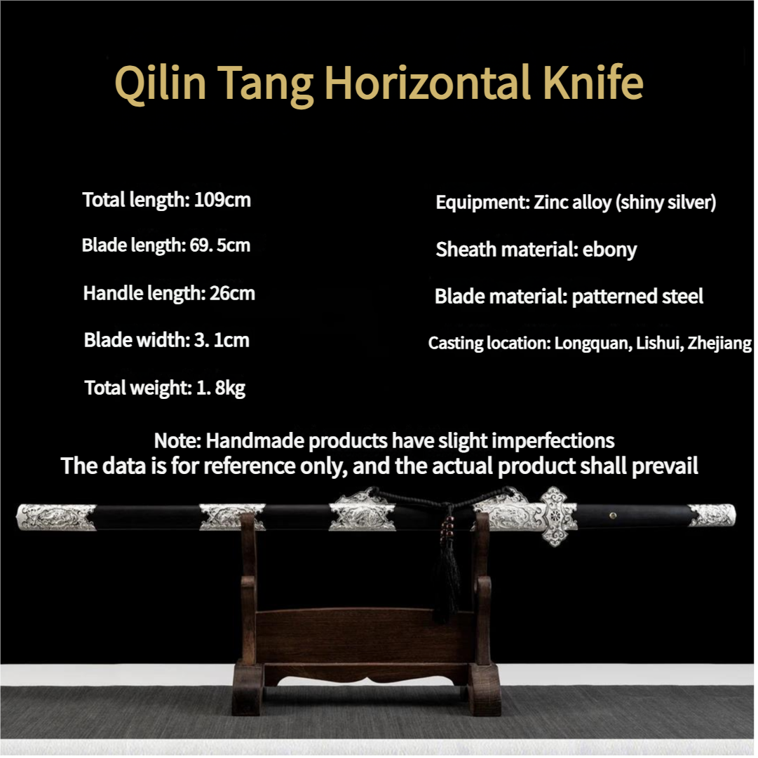Luxury Qilin Tang Horizontal Blade Alloy-Hilted Ebony Scabbard Patterned Steel Ganoderma Pattern One-Piece Unsharpened
