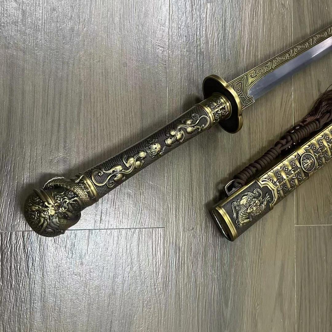 Qilin Tang Horizontal Blade High-Temperature Quenched High-Manganese Steel Design Handcrafted Collectible Cold Weapon Unsharpened