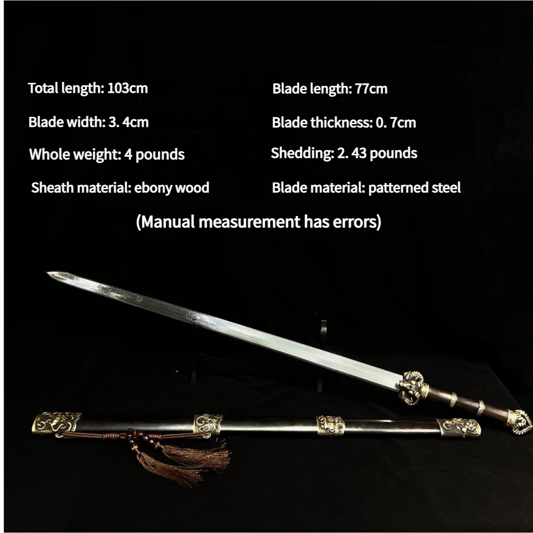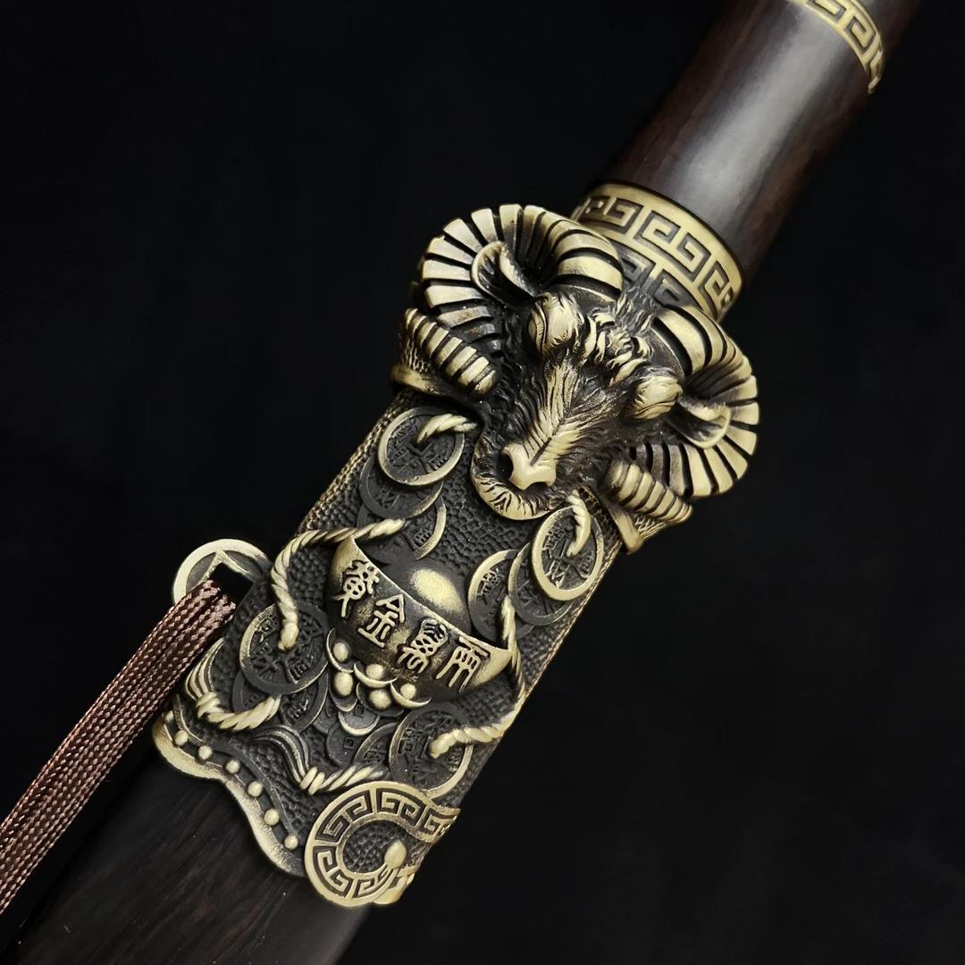 Sheep’s Head Sword Black Ebony Patterned Steel Sword Hand-Forged Cold Weapon Unsharpened Blade