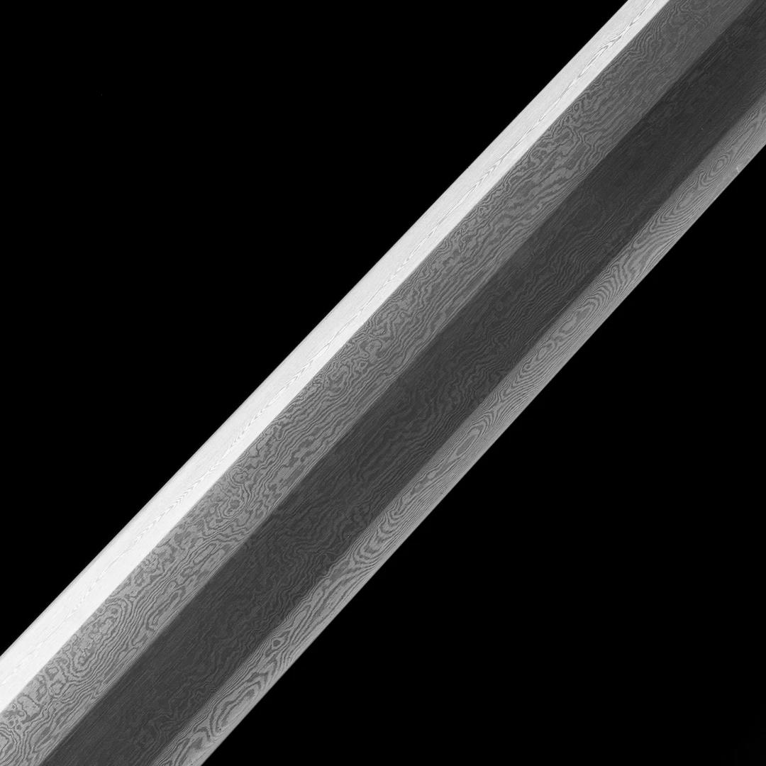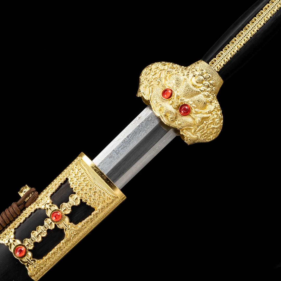 Great Ming Yongle Sword with Alloy Fittings, Ebony Scabbard, Patterned Steel Blade (Unsharpened)